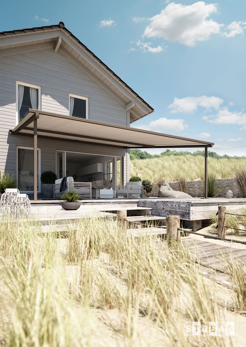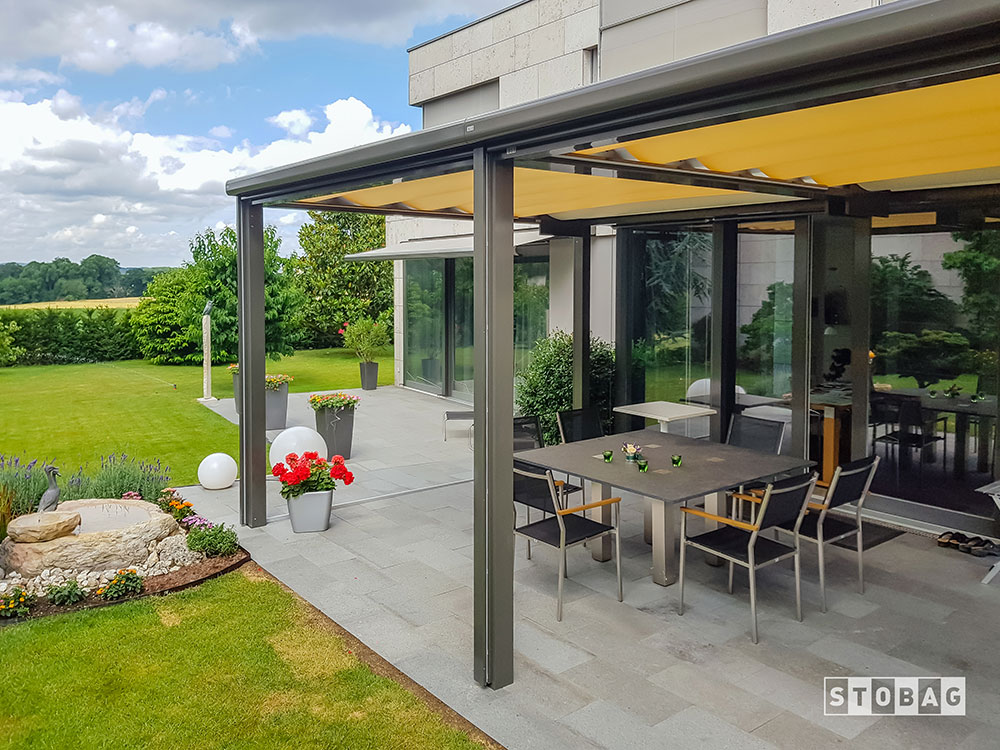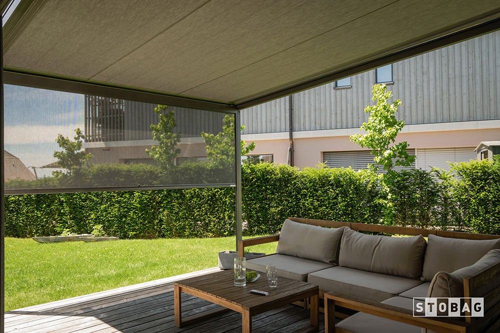 Le modèle Pergolino Stobag est intéressant car il se situe entre le store toile et les installations plus lourdes.