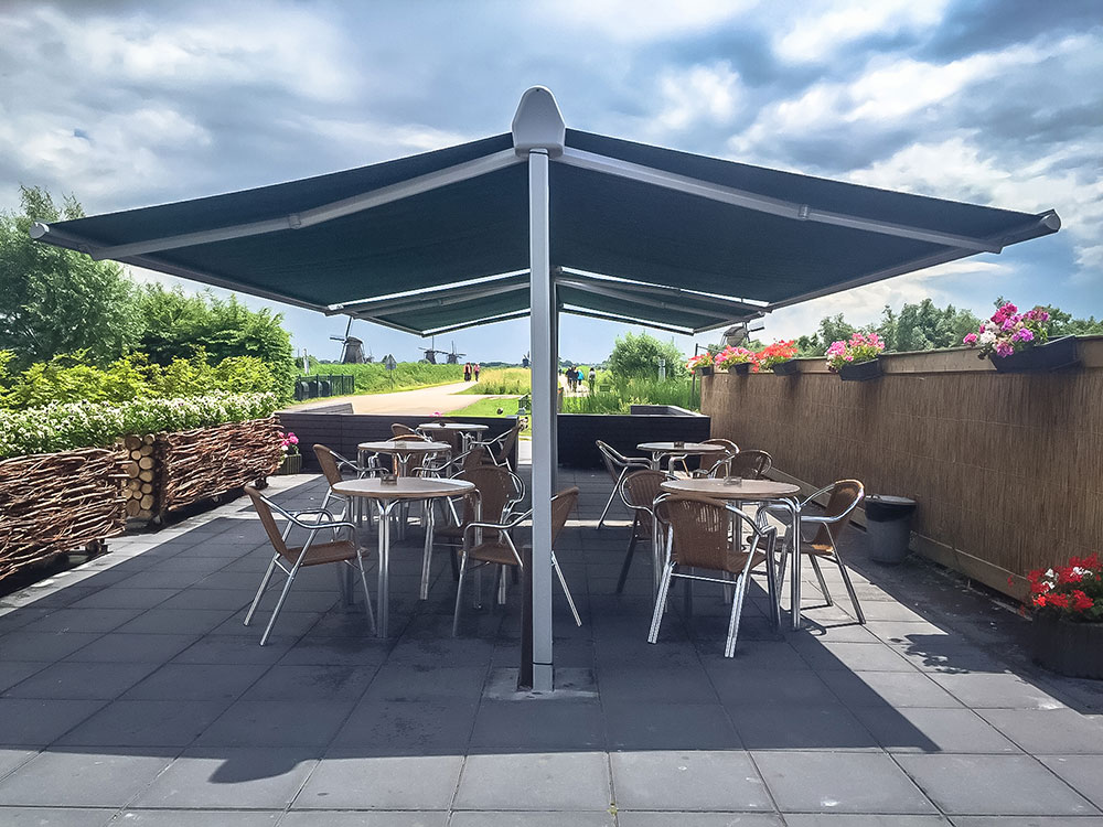 Le store à double pente connaît maintes applications : La restauration ou l'habitat privé, mais aussi pour des jardins d'enfants, stands de marché ou festivités.