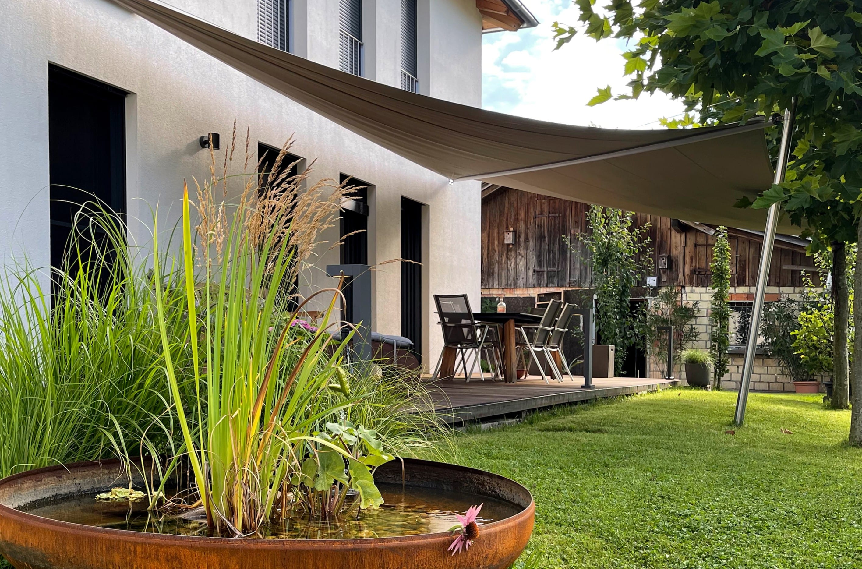 Bien plus qu’une simple protection solaire, la voile d’ombrage devient une véritable pièce architecturale. Ses lignes tendues et sa légèreté visuelle subliment chaque espace extérieur, qu’il s’agisse d’une terrasse, d’un jardin ou d’un espace professionnel.